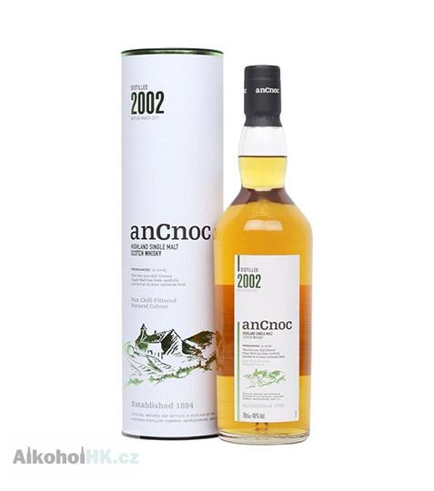 Historie palírny sahá do roku 1893, kdy byla palírna založena společností Haig´s v pozdně viktoriánském stylu pod názvem Knockdhu a v roce 1894 začíná s výrobou Haig´s Blend. V Knock Hill Springs, odkud palírna bere vodu, uběhlo hodně vody a dnes se palírna nazývá gaelským názvem An Cnoc, původně Cnoc Dhubh, což v gaelštině znamená Černý kopec. anCnoc Vintage 2002 zrála v sudech po Sherry vyrobených ze španělského dubu a v sudech po Bourbonu vyrobených z amerického dubu a byla stáčena ve své přírodní formě - nefiltrovaná a bez přidaných barviv. Má nádherně medově bronzovou barvu s jantarovými odlesky. Voní po orientálním koření, vanilce a kakaových bobech spolu s jemnými náznaky citronové trávy, pomerančové kůry a květin. Chuť je smětanové jemná, chutná po vanilce s náznaky sherry, pralinek a čerstvých citrusů, tak typických pro anCnoc. Tato whisky je vhodným svědectvím o časem prověřených metodách používaných při výrobě této tradiční, ale zároveň moderní jednosladové whisky.