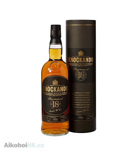 Palírna Knockando, kterou postavil John Thompson v roce 1898, se pyšní výhledem na řeku Spey ve stejnojmenné vesnici. Knockando, název odvozený z gaelštiny „Cnoc-an-dhu“, znamená „malý černý kopec“, byla založena během boomu viktoriánské whisky. V každé láhvi whisky Knockando najdete pouze produkty jedné sezóny nebo roku výroby, což je postup, který tuto jemnou Speyside whisky odlišuje od všech ostatních. Dnes je vlastníkem palírny společnost Diageo, jako Single Malt zpracovává pouze 8% produkce, whisky Knockando mimo jiné tvoří jednu z hlavních složek proslulé směsi J&B. Knockando Slow matured 1994 18 let je jednosladová Speyside whisky s pomalým zráním v sudech po Sherry, destilována byla roku 1994 a v sudech zrála 18 let. Má nádhernou středně zlatou barvu, voní po rozinkách, citrusové kůře, medových cereáliích a ořechách. V chuti poznáte cedrové dřevo se sladkostí marcipánu, křupavá zelená jablka s hrstí bylinek se suchým dubovým závěrem.